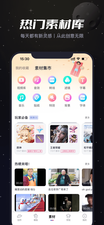 3.丰富素材:必剪提供宝藏音乐库、丰富素材、文字、贴纸、封面模板等,为用户的视频添加更多亮点;
