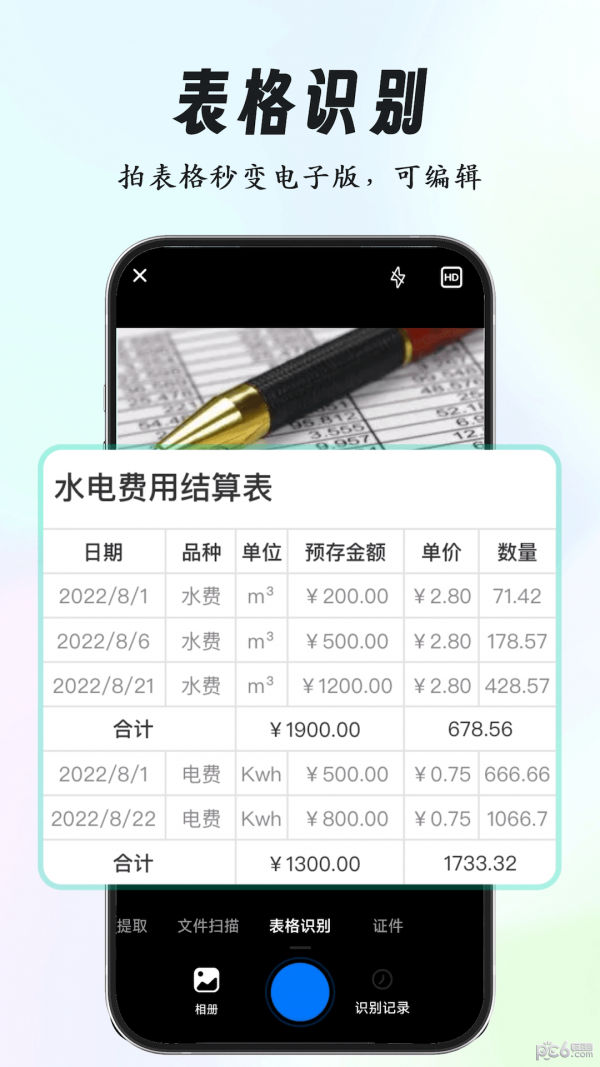 2.多种识别:支持文字识别、表格识别等多种任务;
