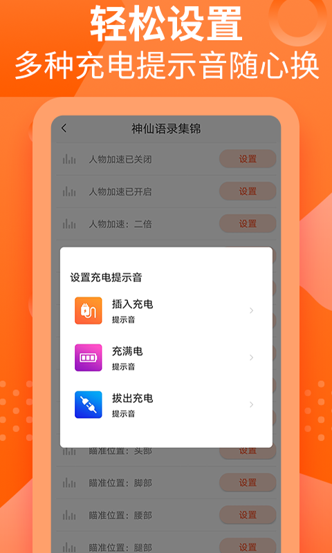 4、灵活选择: 用户可以随时更换充电提示音,根据不同心情或场景选择不同的音频或视频素材,保持充满新鲜感的使用体验。