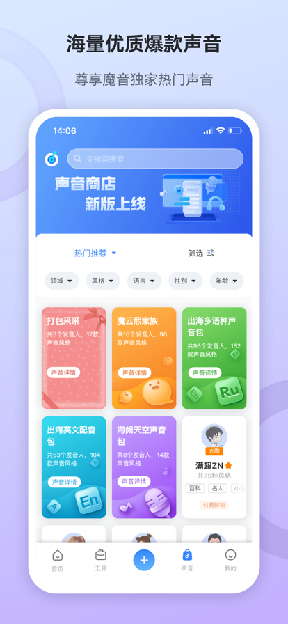 1.多样化的声音选择,包括明星大咖、爆款声音、搞笑方言、男女老少等,满足不同用户的个性化需求;