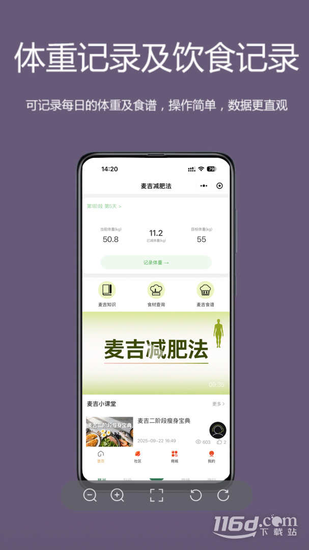 ●社区交流:与减重达人互动分享成功经验,共同减重;