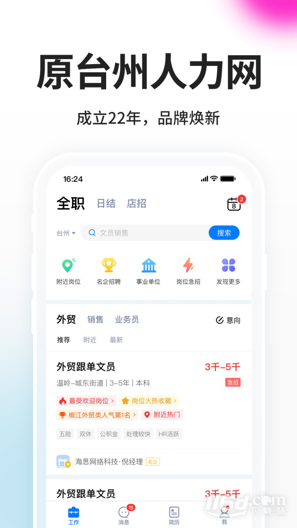为您提供台州人力网手机应用,是您下载台州人力网安卓应用较好的网站!