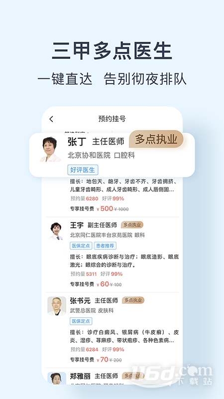 北京的各大医院每天人都非常多,光挂号就要排特别长的队,想要告别排队就快来下载北京医院预约挂号网APP吧,拥有这款软件之后,大家就可以在线预约挂号了,拒绝号贩子,无偿为提供近百家医院的号源,更有优质医生推荐功能,帮助用户快速找到合适自己的专科医生,享受更优质的医疗服务