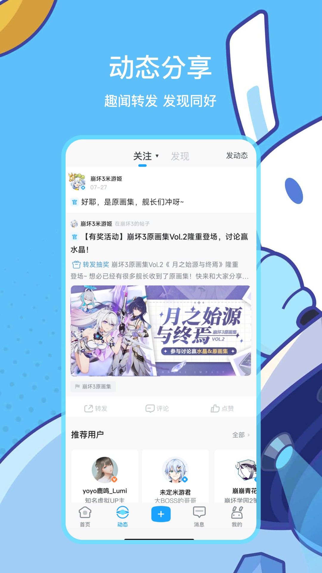米游社官方正版是一款专为米哈游旗下游戏玩家而打造的一个社区平台,该平台汇聚各种玩家用户,提供各种游戏的攻略,和人物职业技能等资料的介绍,结识各种志同道合的朋友.感兴趣的朋友可以来下载。
