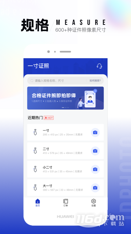 输入关键字,智能搜索你想要的规格尺寸;一寸照、二寸照、学生证件照、考试证件照照、工作证件照......海量尺寸,规格齐全,是你拍证件照的首选