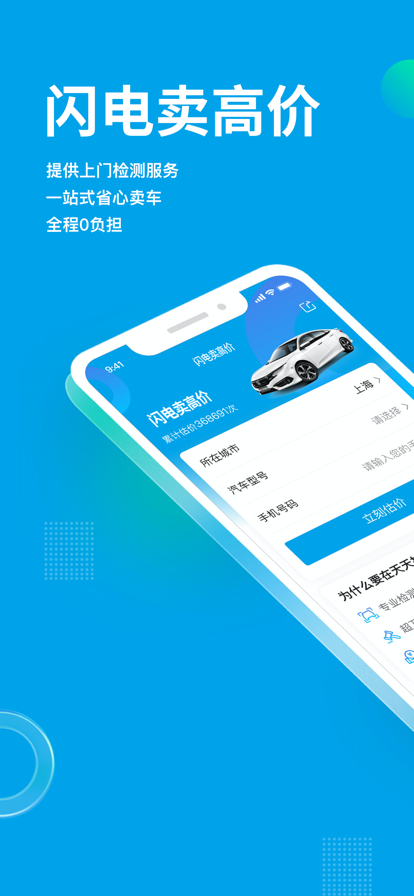 2.车主可以通过天天拍车平台进行二手车的免费上门检测、免费估价,并在全国范围内进行竞价交易,以最高价快速卖出二手车;