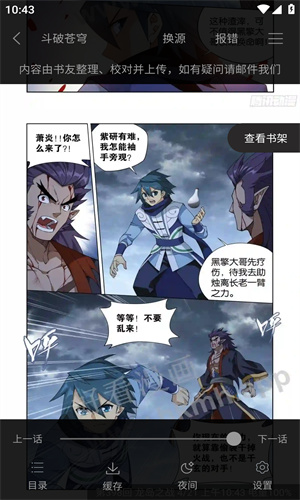 4、阅读界面中可使用目录快速跳章节,也可以将漫画添加收藏或下载缓存,方便离线观看。