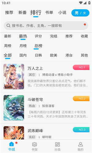2、如果有特定想看的作品,可以直接利用上方的搜索功能输入关键词查找目标漫画。