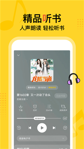 1、大量完结、连载、出版小说、同时为各位读者带来了高品质听书资源,品质最优。