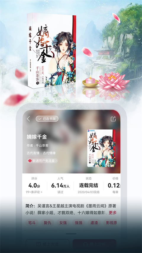 1、注册可获7天全站免费畅读特权,40万册热门图书、小说、听书想读就读。