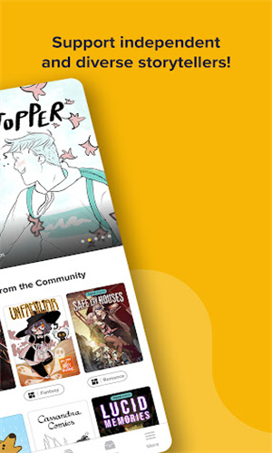 Tapas漫画是一款备受推崇的顶级漫画阅读软件,这里不仅提供了丰富多样的精彩漫画作品,还拥有海量的小说资源,让用户可以自由选择畅读。除了享受超多不同类型的精彩漫画之外,Tapas还为你带来了无尽的阅读乐趣,让你沉浸在各种有趣的小说世界中。无论你是喜欢浪漫爱情故事、还是追求刺激冒险的剧情,亦或是钟情于悬疑推理的挑战,Tapas都能满足你的阅读需求。