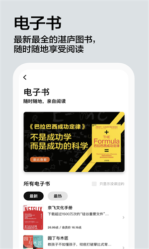 湛庐阅读这款软件同时具有纸质书,电子书以及有声书,满足用户使用不同方式的阅读书籍的需求。书籍包含了个人生活,职场工作以及科技知识等分类,可以从中挑选出想看的书籍进行购买。提供的实体书书籍都是由正规出版社初版,可以保证它们的排版工整,也不会出现错别字,满足你在阅读过程中对于观感的高要求,提升你的阅读体验。