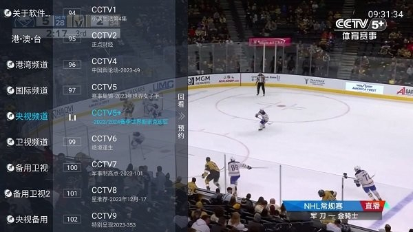 2、点击屏幕,在左侧可以看到各种可选频道以及代播节目