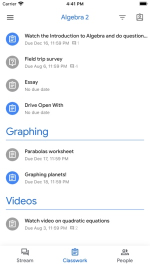 “课堂”会自动为每项作业和每位学生创建云端硬盘文件夹。学生可以在他们的“作业”页面上轻松查看到期内容。